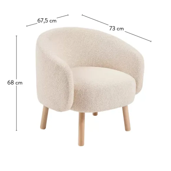 Boli É Uma Poltrona Redonda E Bege Feita De Tecido Boucle. A Tendência Do Momento. Com A Sua Forma Arredondada, Tecido Macio E Pernas De Madeira, Esta Poltrona Confere Calor A Qualquer Interior. Ideal Para A Sala De Estar Ou Canto De Sentar. Boli Também Está Disponível Em Castanho E Como Sofá Grande.