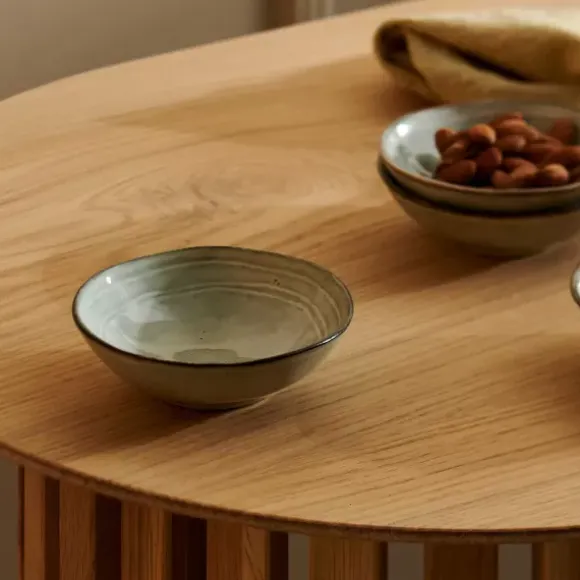 O Serviço Feito À Mão Confere Instantaneamente Mais Ambiente E Carácter À Sua Mesa. Sirva Os Seus Petiscos De Aperitivo Nestas Tigelas Earth Lagoon Com Um Diâmetro De 12 Cm. Têm O Tamanho Ideal Para Nozes, Azeitonas, Cubos De Queijo E Outros Aperitivos. A Cor Verde Clara E Borda Escura Das Tigelas Tornam-Nas Singulares, Assim Como A Sua Mesa.