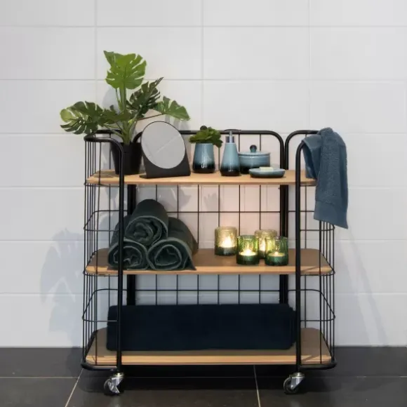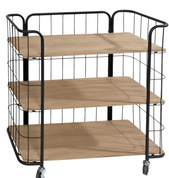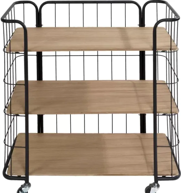 Oslo Estante Com Rodas 3 Prateleiras Preto, Natural