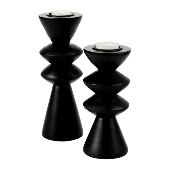 Zigzag Porta-Velas Para Lamparinas Preto